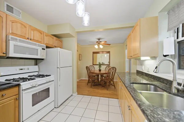 Charming 2BD/1BA home with Deeded Parking included in Wolcott Village, a beautifully maintained community nestled in the heart of Ravenswood. This sun-filled two-bedroom, one-bath home is perfectly situated within the complex, offering serene views of the landscaped grounds. Step inside to an inviting foyer that opens to a spacious living room, a separate dining area, and two generously sized bedrooms. The kitchen features maple cabinets, granite countertops, and hardwood floors that flow seamlessly throughout the unit. Additional highlights include an updated bath, in-unit washer and dryer (2018), and central A/C (2018). This unit comes with gated and secured deeded parking, a large storage, a bike room, and internet and cable included in the monthly HOA fee. This prime location is just steps to Winnemac Park, Andersonville, Lincoln Square, Ravenswood Metra, the CTA Brown Line, Mariano's, Colectivo Coffee, and so much more. A well-managed association and vibrant community make this a wonderful place to call home.